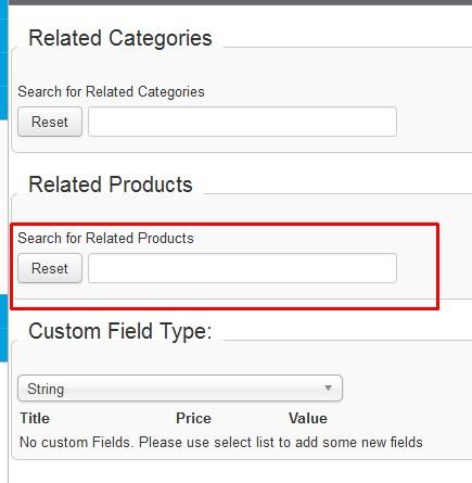 4. The second section down is the Related Products. and should look like this: