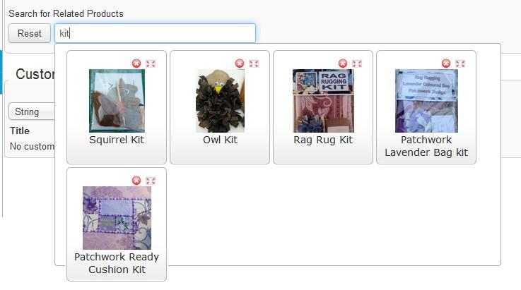 All you have to do is click one of the images and that product will become related to the primary product. Unfortunately to add each one you have to remove the text and type it again for each new one, hopefully one day this will be updated so you can immediately multi select the products you want and not have to type it in each time. I have requested this as a feature but wont be holding my breath!