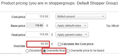 To set a sale price all you need to do is change the Override box and select "Overwrite final" as below: